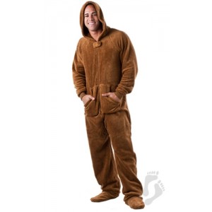 Einteiliger Schlafanzug (auch Schlafoverall oder Erwachsenen-"Strampler" genannt) für Damen und Herren in Braun.